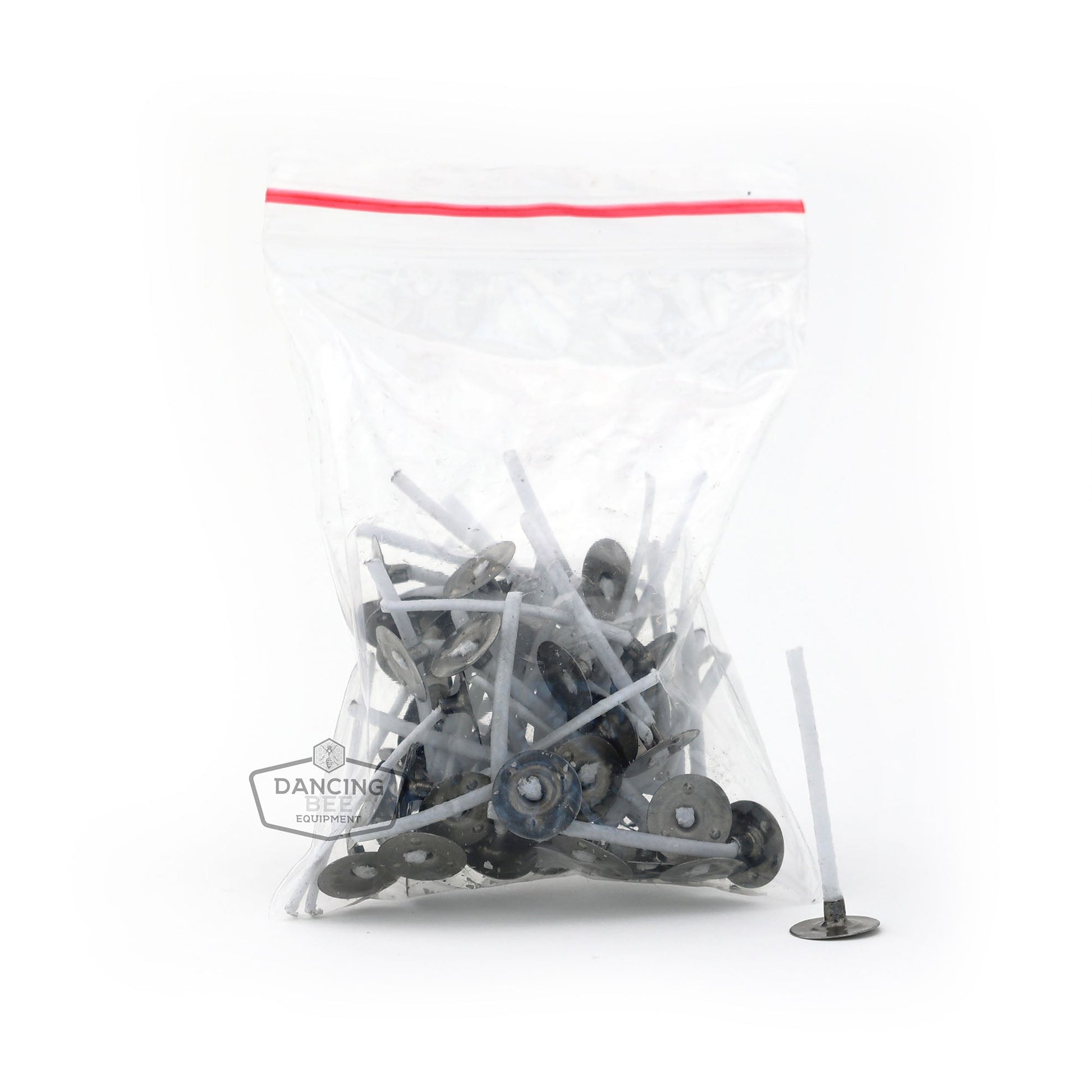 Save time with these round wick holders with waxed wicks. No need to cut and wax candle wicking yourself. Simple insert these pre-wicked tabs into your candle molds and pour the wax.