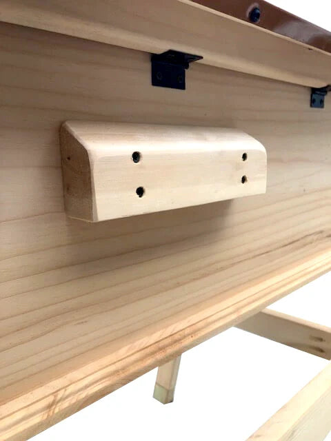 The hinged roof is super easy to open and close for routine inspections. There is a built-in backstop to keep the lid from over-extending. The Smart Hive roof also eliminates the need for a heavy object to secure a telescoping lid, further reducing back strain.