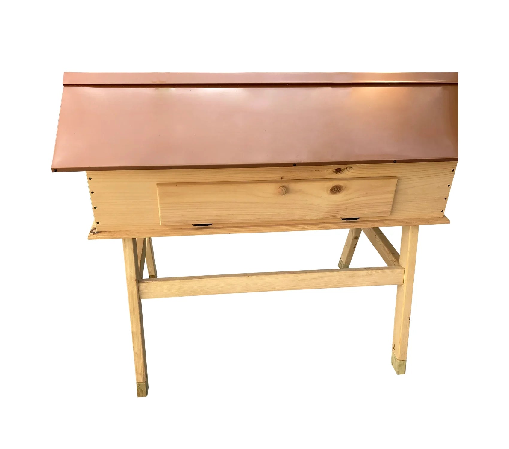 The horizontal Smart Hive’s built-in stand provides a convenient working height that eliminates stacking and unstacking the extremely heavy boxes of a traditional vertical hive. Deeps and supers on a traditional Langstroth hive routinely weigh 50 to 70+ pounds.