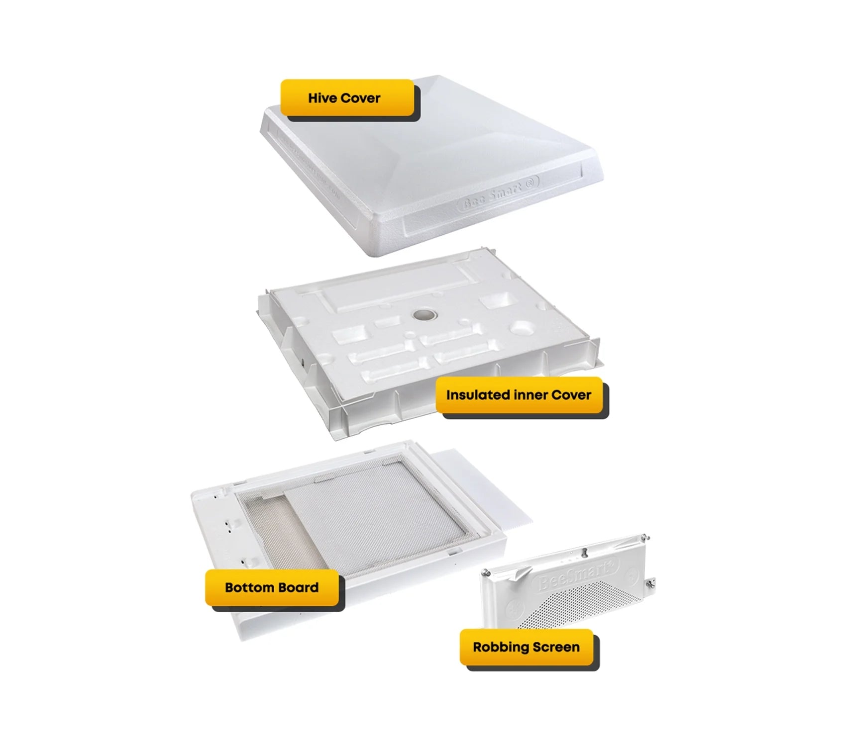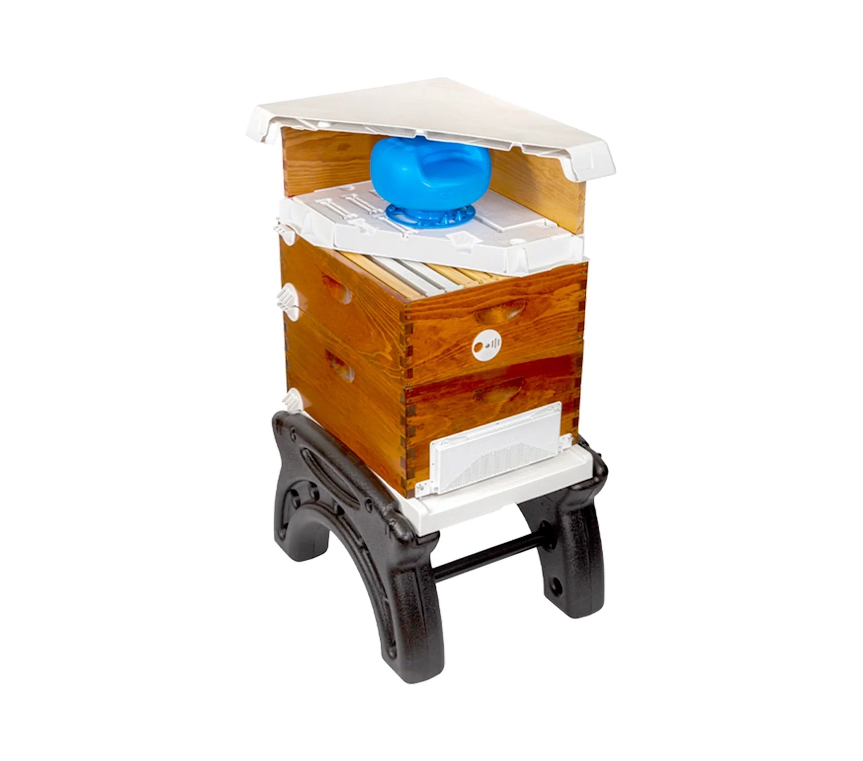 The Ultimate Quad Hive System is the total package of hive products packed with amazing features to guarantee happier colonies, healthier bees, more honey, and fewer losses. These exclusive designs are protected by patents and are perfect for 8-frame and 10-frame wooden ware. They come ready to use' so you don't need to worry about any assembly or painting. For a complete solution, you can also pair them with other Bee Smart Products.